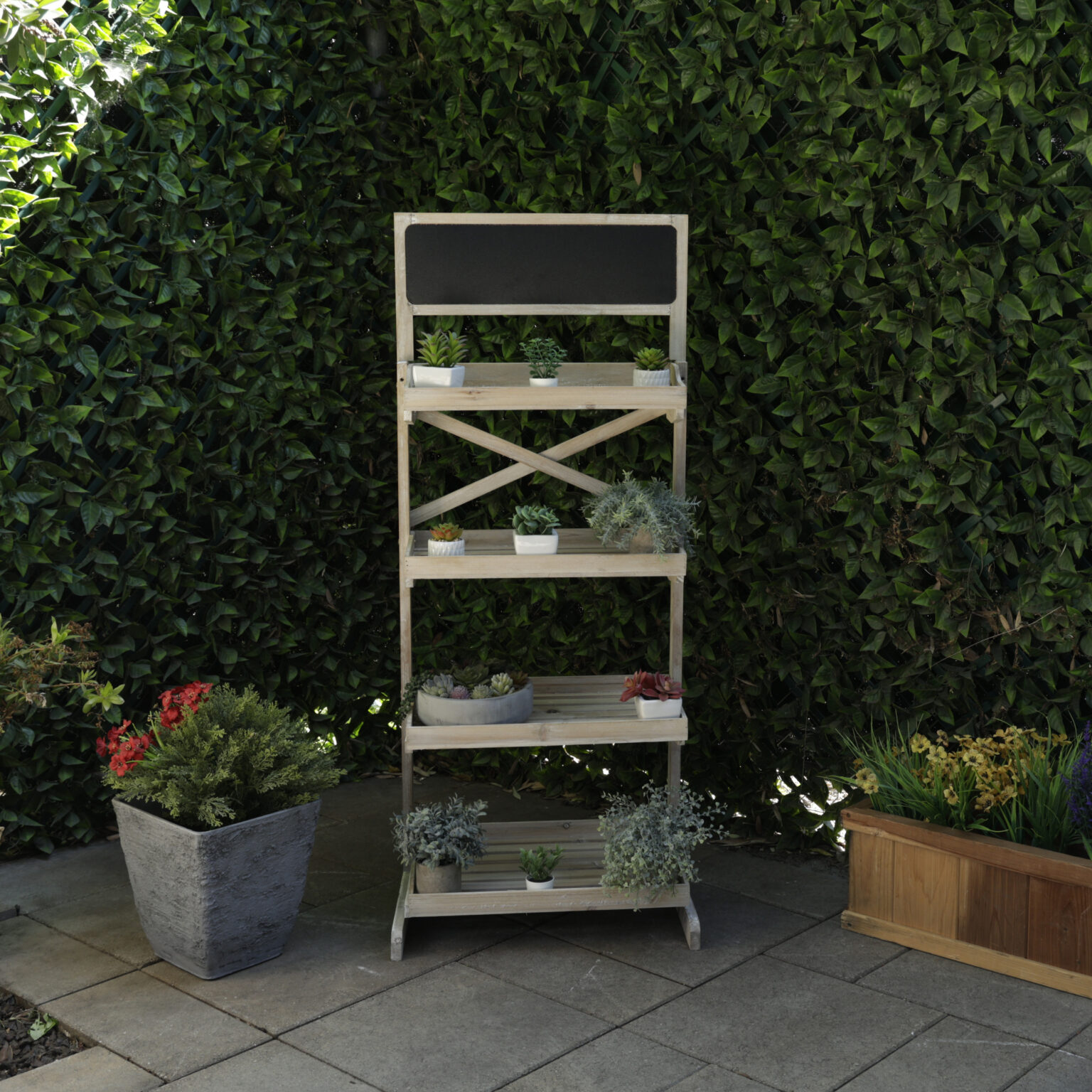 Alpine Corporation MBB164 Wood 4-Tier Storage Organizer with Chalkboard, Rustic Wooden Display Rack for Books, Plants, Decor