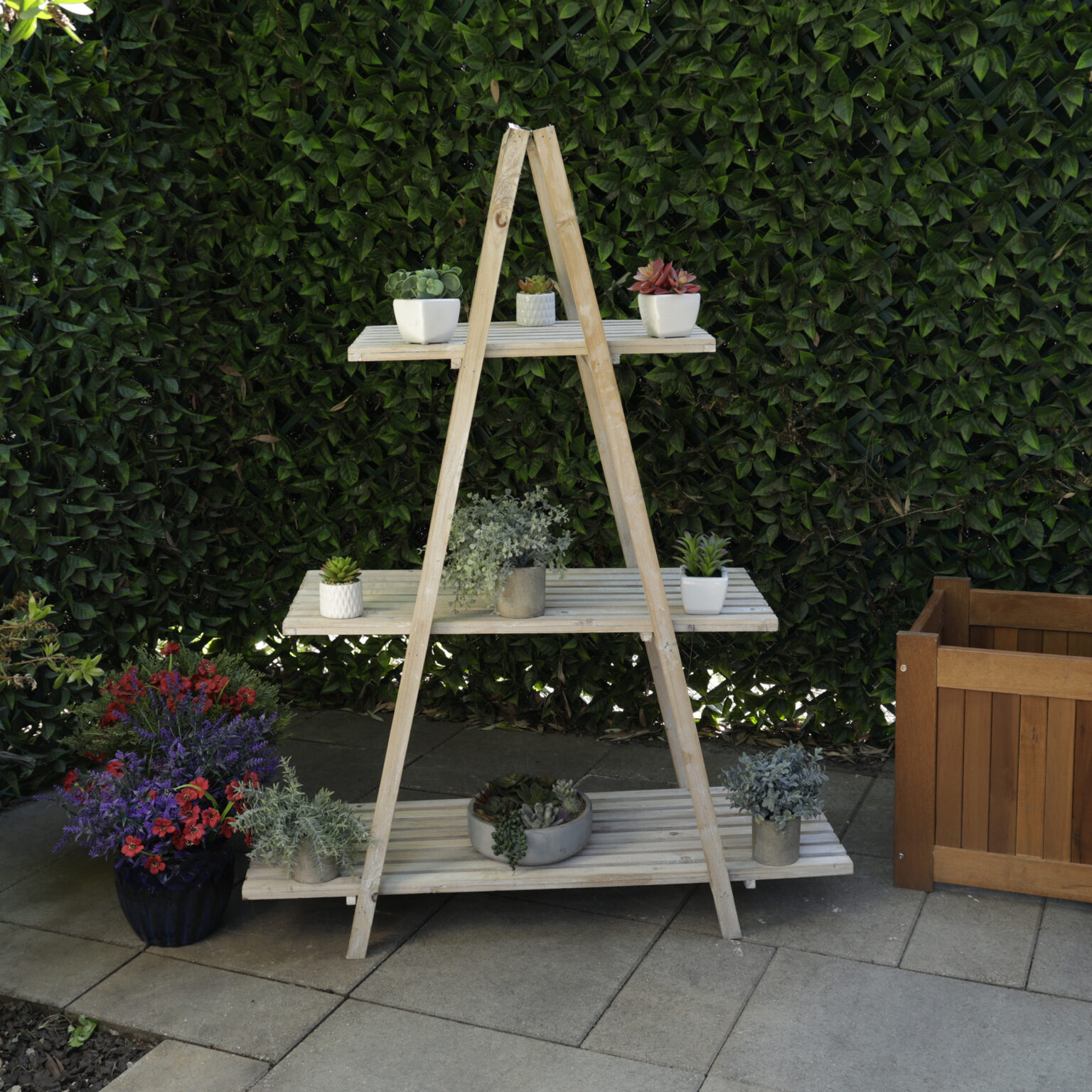 Alpine Corporation MBB168 Modern Wooden 3 Tier Triangular Shelf Storage Rack, 50″ Tall, Natural Finish