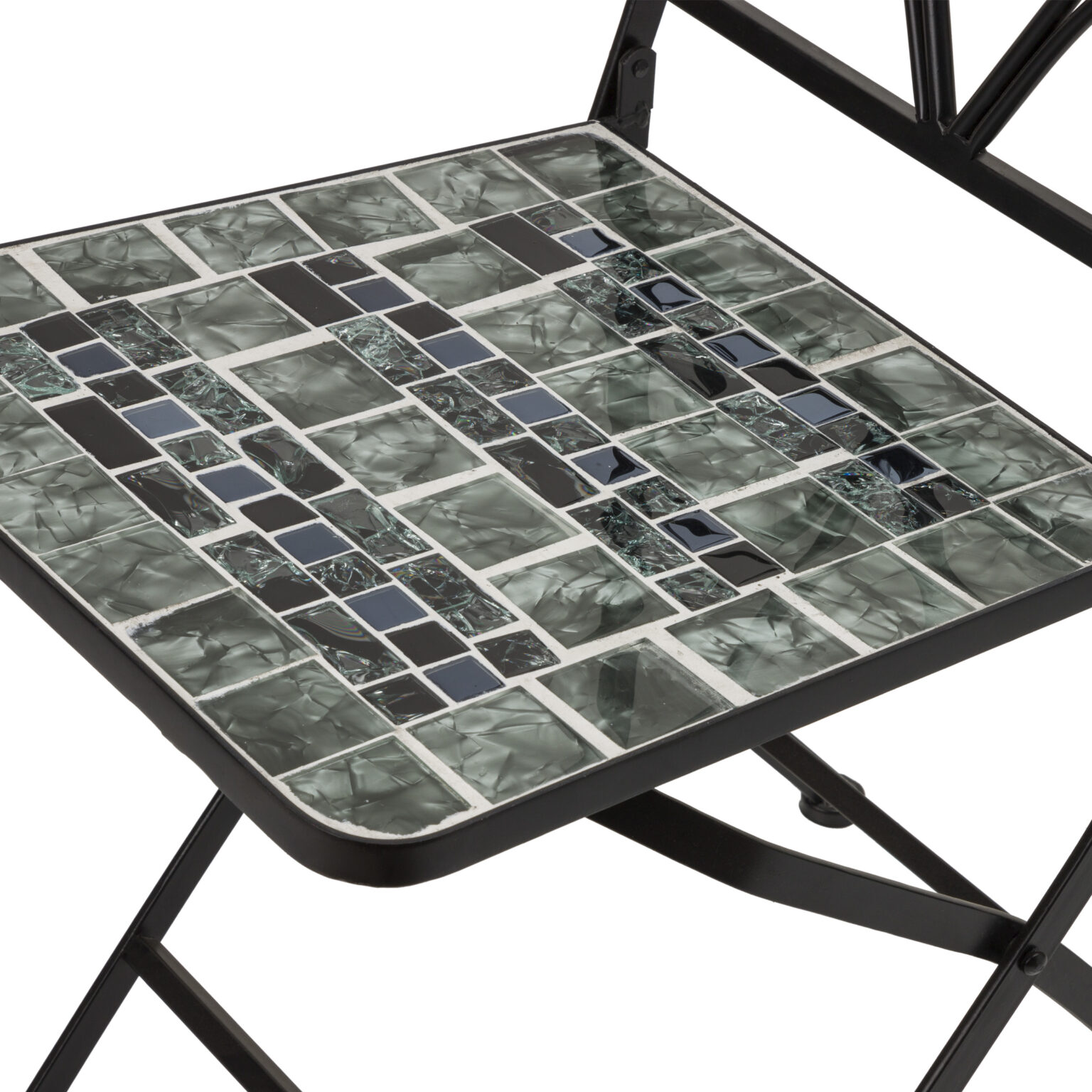 Alpine Corporation Indoor/Outdoor Marbled Glass Mosaic 3-Piece Bistro Set Folding Table and Chairs Patio Seating